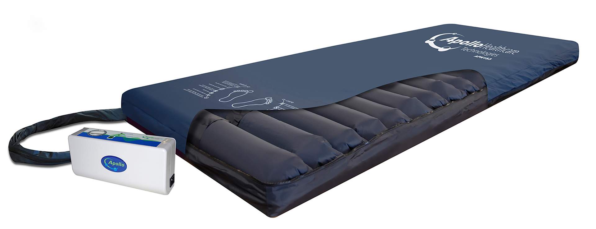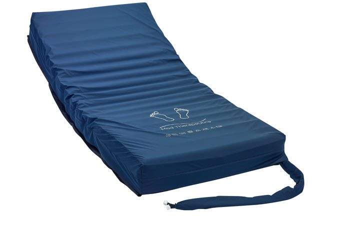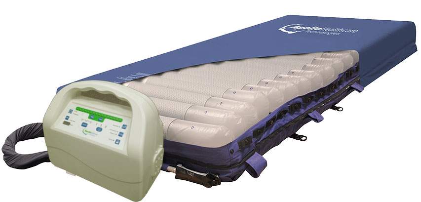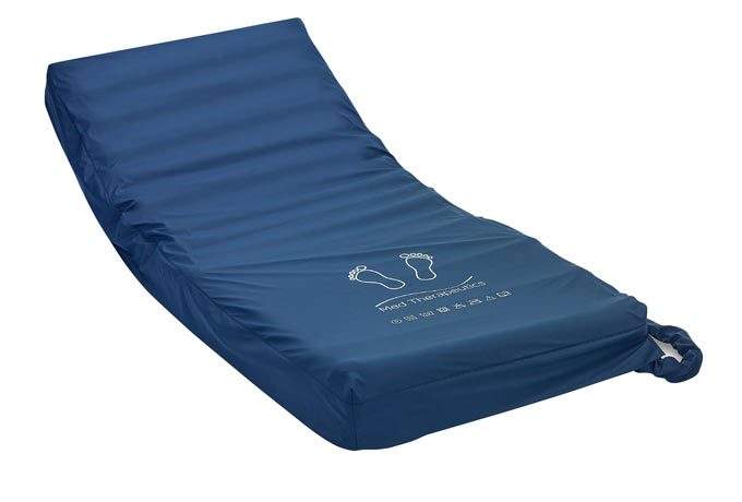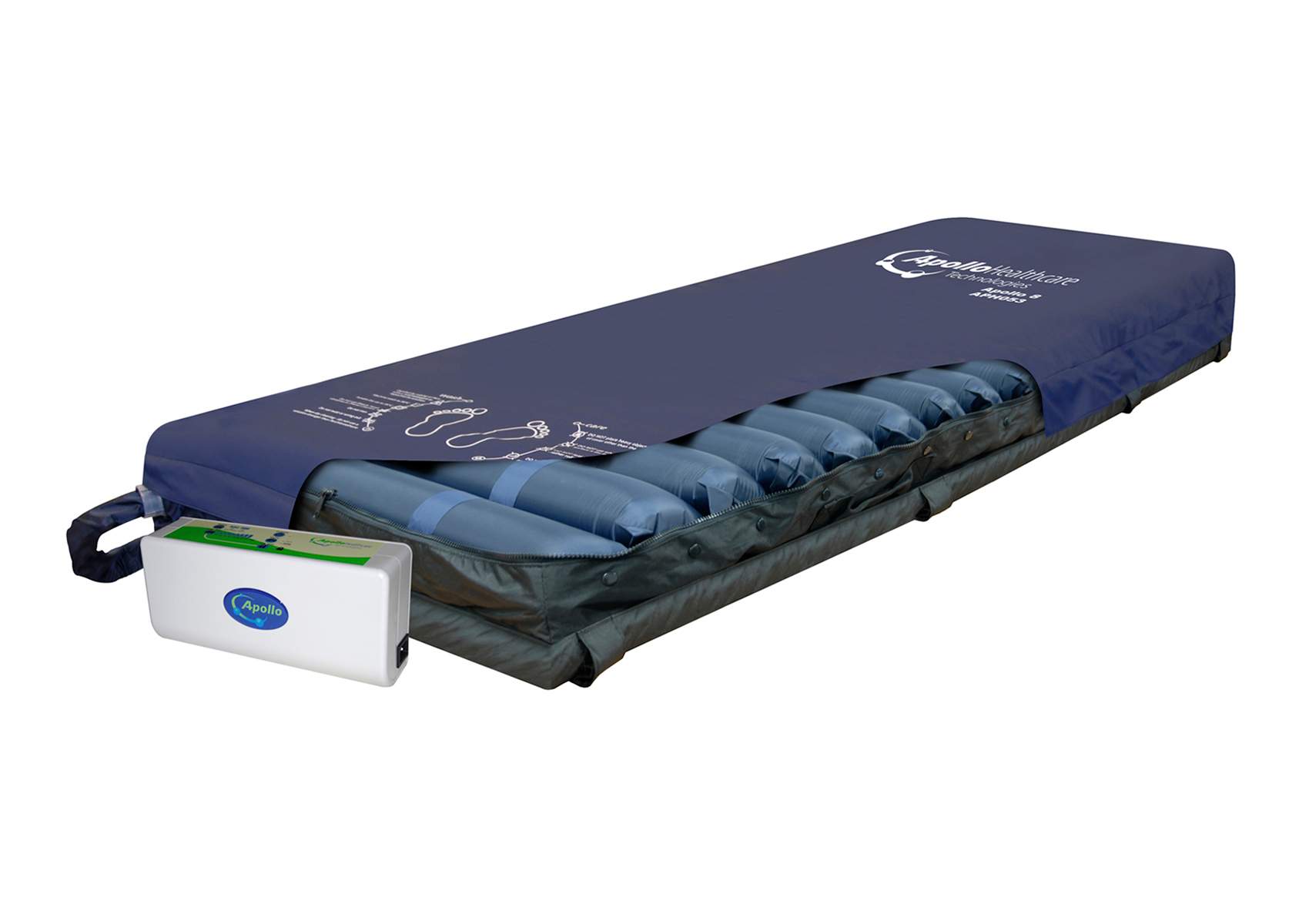 Alternating or sequential pressure-relieving mattresses are made of air cells which inflate and deflate alternately or sequentially. This ensures that pressure on any given point is continually changing. The sequence of inflation and deflation is controlled by a pump which is usually mains powered. The interval of inflation and deflation can also be controlled on some models.