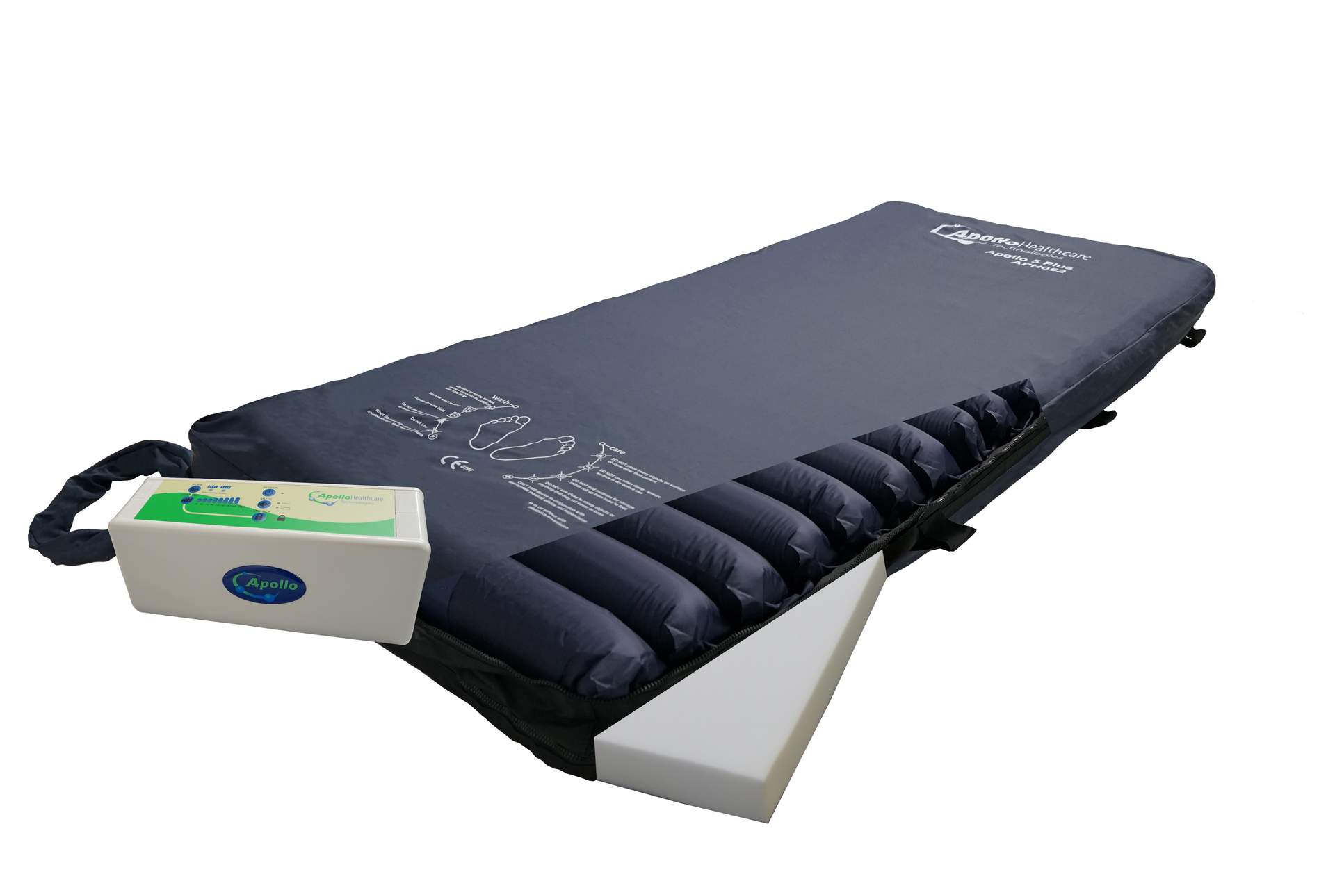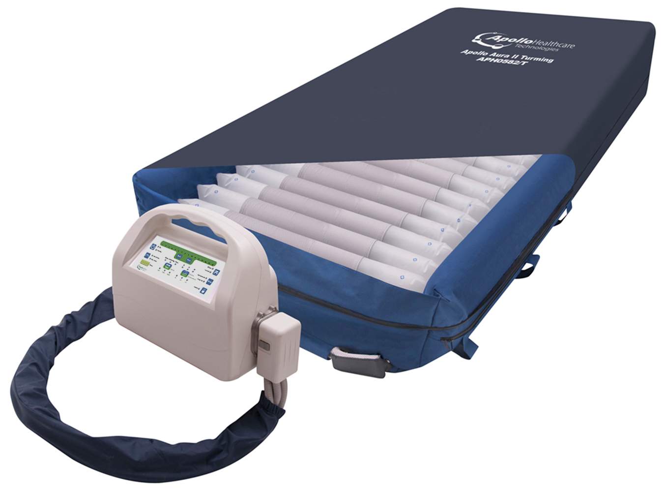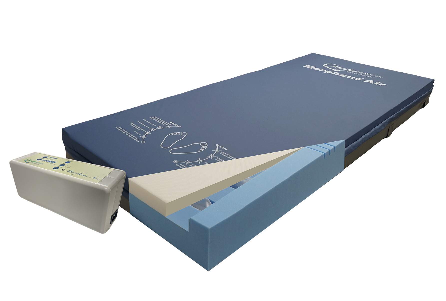 Alternating or sequential pressure-relieving mattresses are made of air cells which inflate and deflate alternately or sequentially. This ensures that pressure on any given point is continually changing. The sequence of inflation and deflation is controlled by a pump which is usually mains powered. The interval of inflation and deflation can also be controlled on some models.